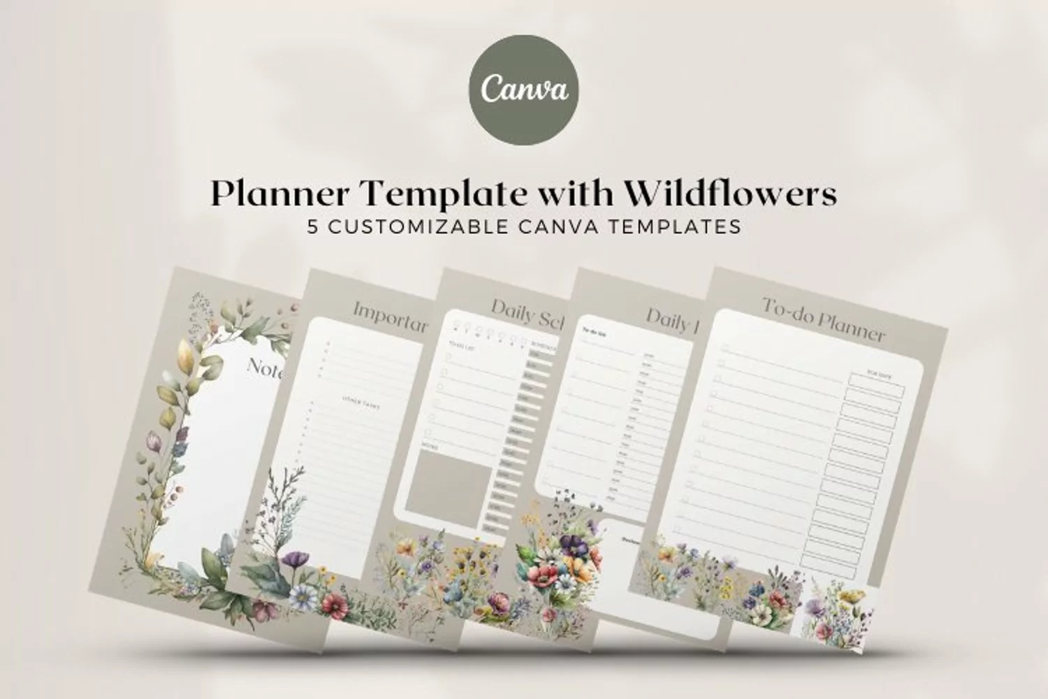 Get organized and stay on top of your plans with Planner with Wildflowers! This Canva template is the perfect way to get organized with its beautiful wildflower design. You can keep track of your tasks in style. Get organized today and make your life easier!