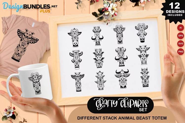 Different Stack Animal Beast Totem Clipart Set example image 1