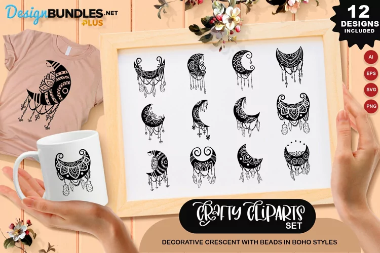 Clipart Clipart Bundle Clipart Set Boho Clipart Clipart Svg Decorative Crescent With Beads In Boho Styles Crescent With Beads Clipart Decorative Crescent Clipart Boho Styles Clipart Set Crescents Clipart