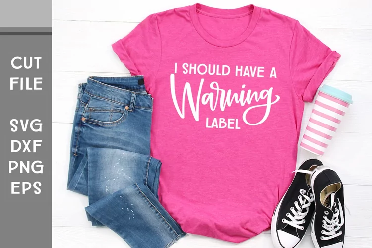 This is a hand lettered cut file. It reads, "I Should Have a Warning Label."