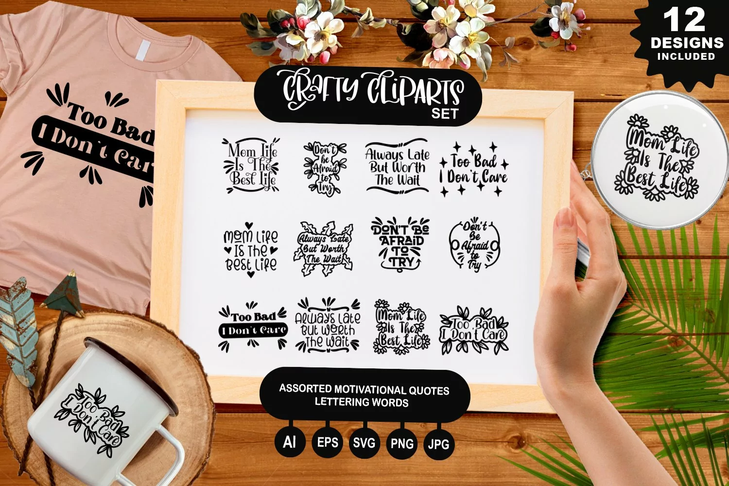 Assorted Motivational Quotes Lettering Words Clipart Set example image 1