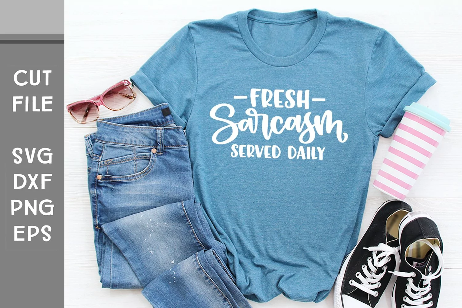 This is a hand lettered cut file. It reads, "Fresh Sarcasm Served Daily."