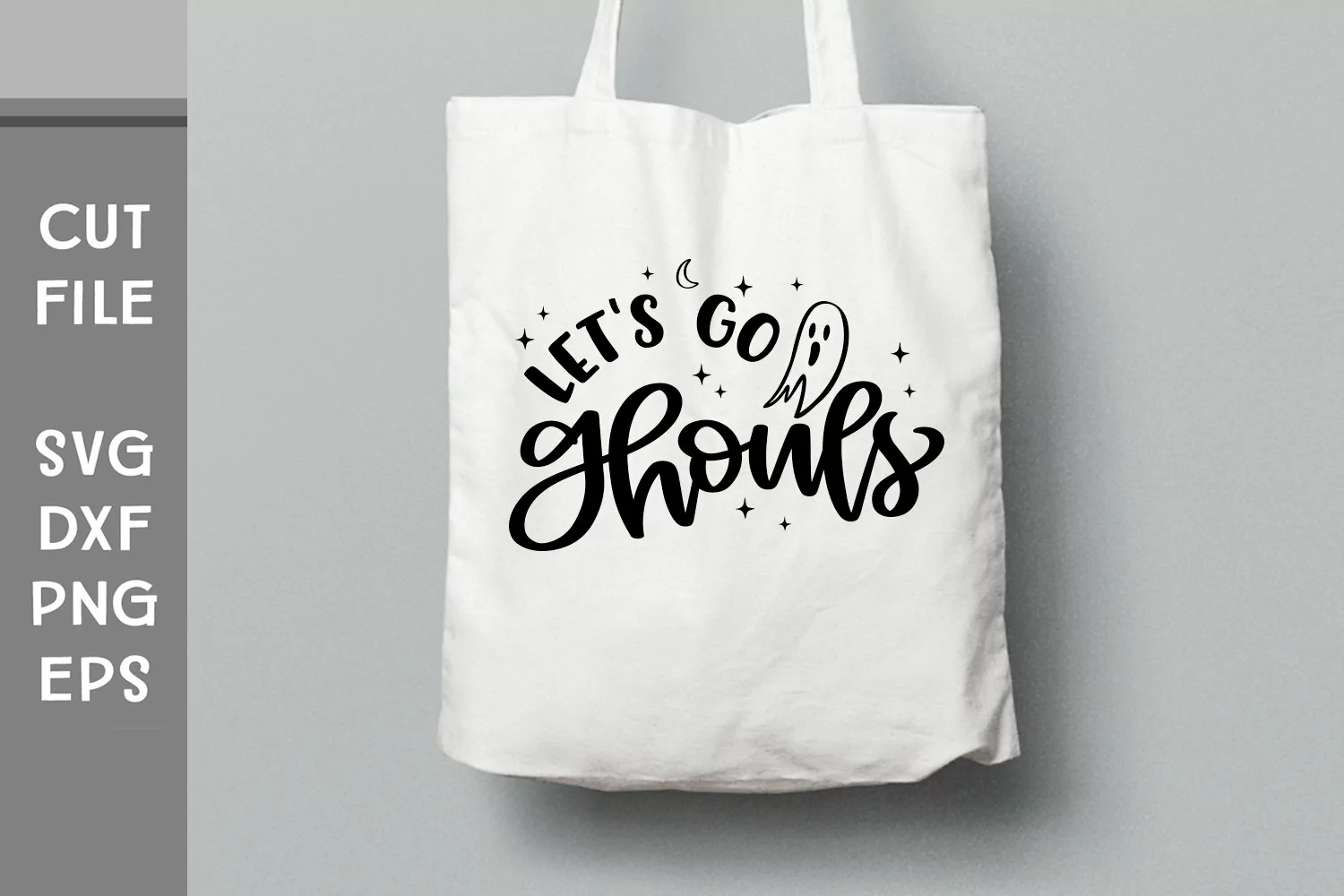 This is a hand lettered cut file. It reads, "Let's Go Ghouls."