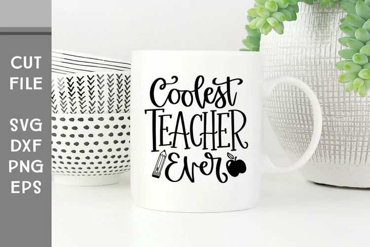 This is a hand lettered cut file. It reads, "Coolest Teacher Ever."