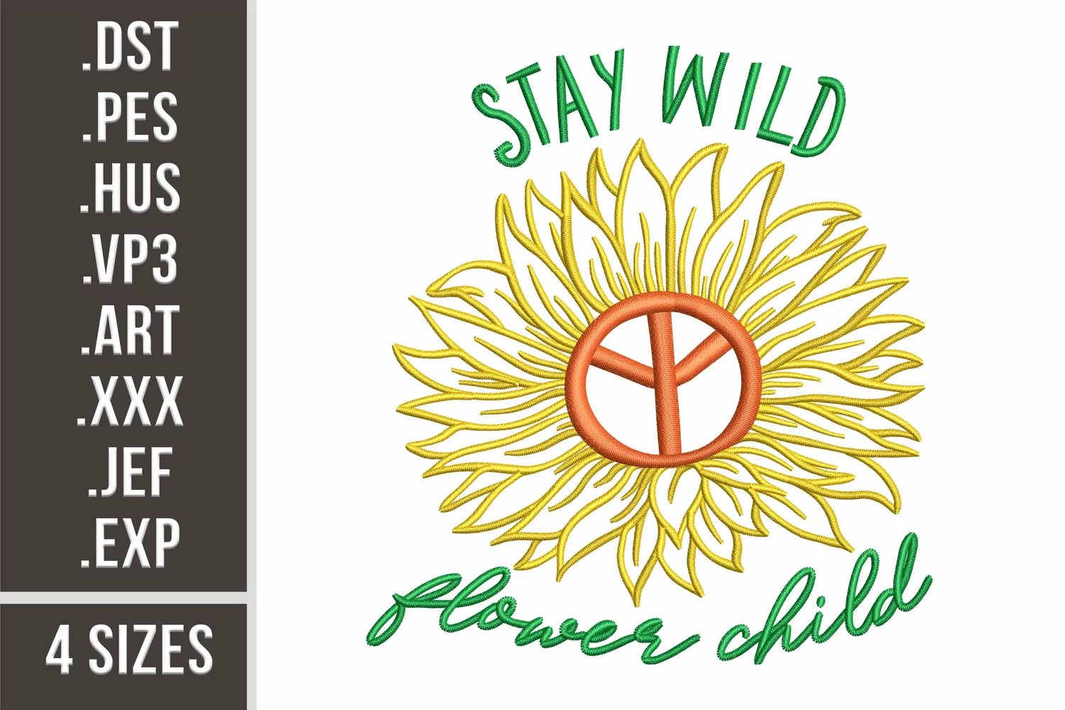 Stay Wild Flower Child | Sunflower Embroidery example image 1
