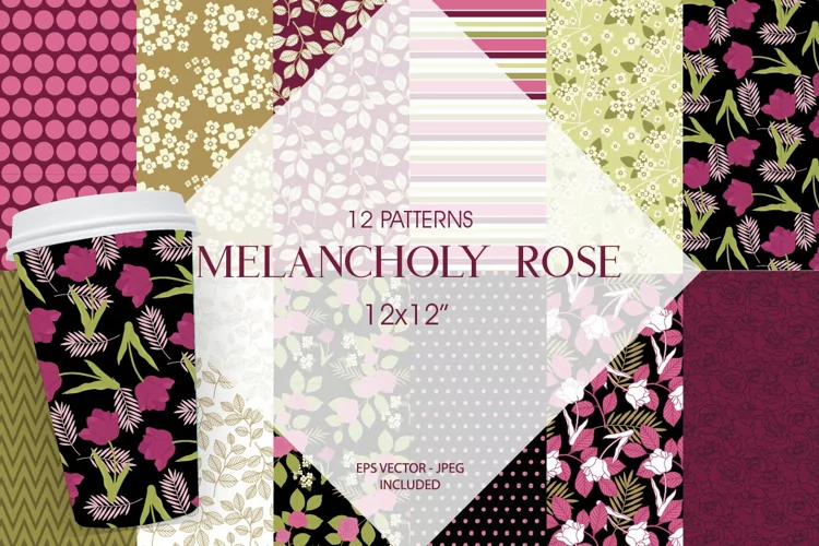 Melancholy Rose Pattern designs, can be used for invitations, home decoration , gift cards, kids room decoration, parties, scrapbooking and more.