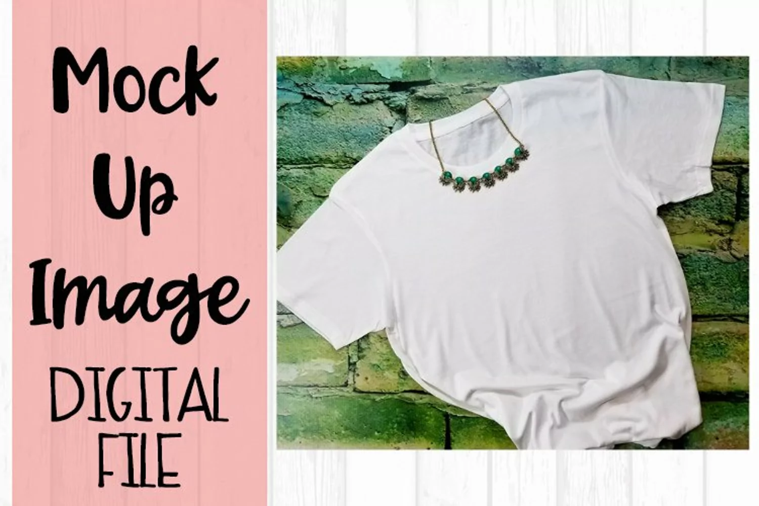 White Short Sleeve Tee Shirt on Green Bricks Mock Up
