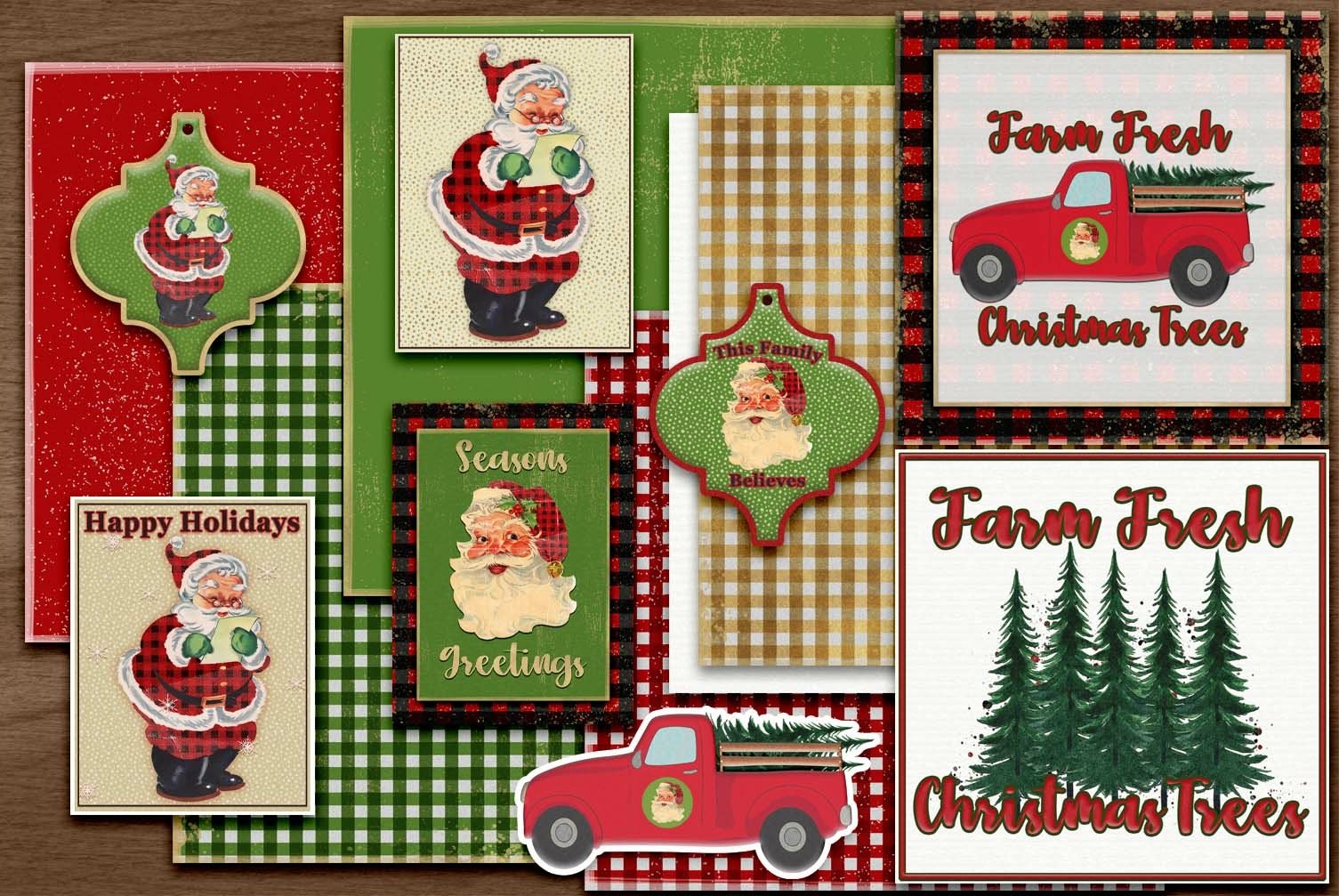 Vintage Retro Christmas Santa Buffalo Card Making Plaid Crafting Sublimation Ready To Print