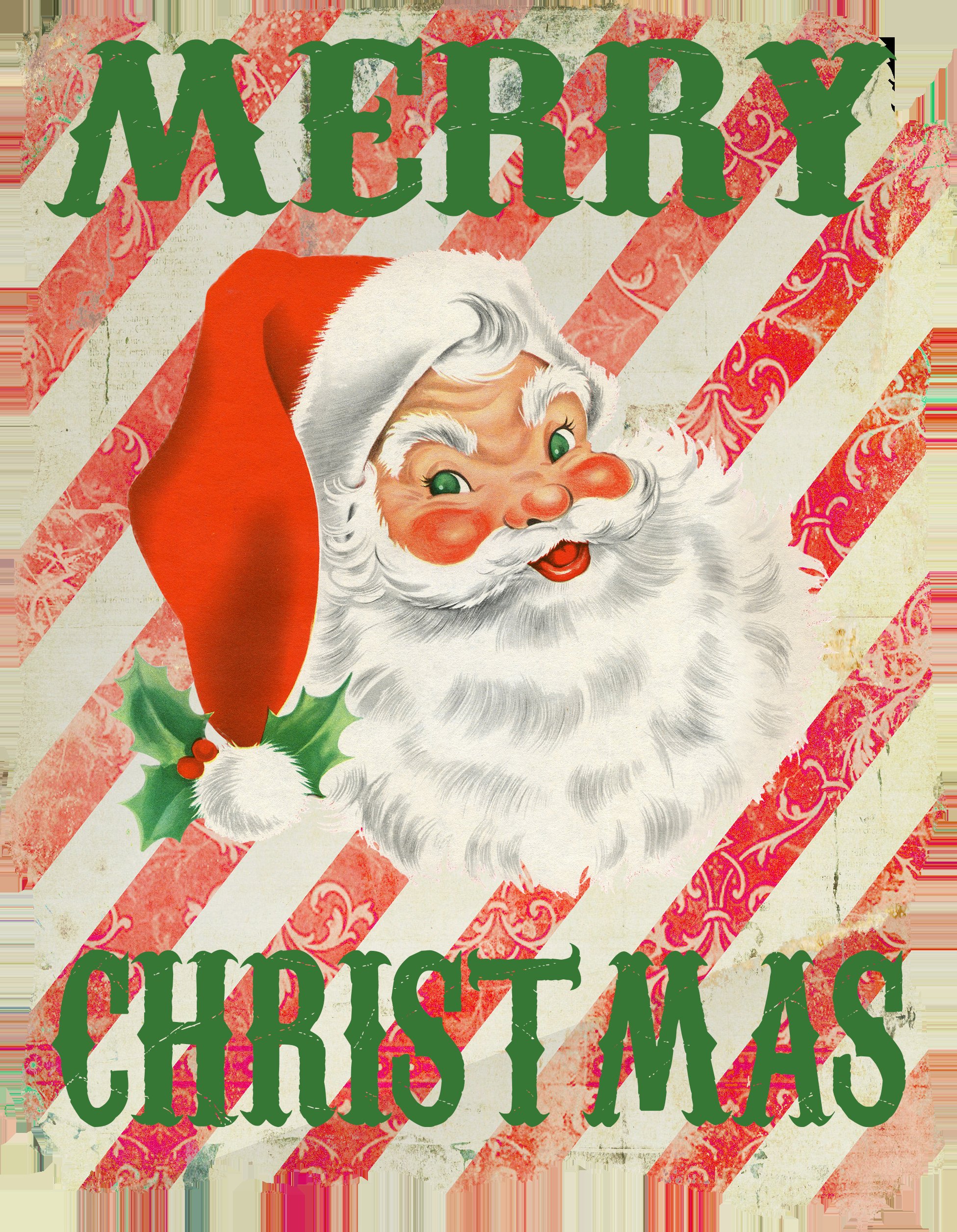 Vintage Retro Antique Christmas Santa Merry Glitter Stripes Striped Southern