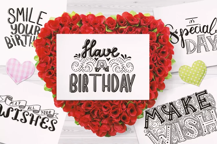 something special for your loved one, this set of 30 hand drawn lettering designs can help you create greeting cards, mugs, t-shirt designs, stamps, tags, wall decor and much more for any birthday or party occasion! You can use these designs also as photo overlays for your blog, social media, invitations or photo presentation.