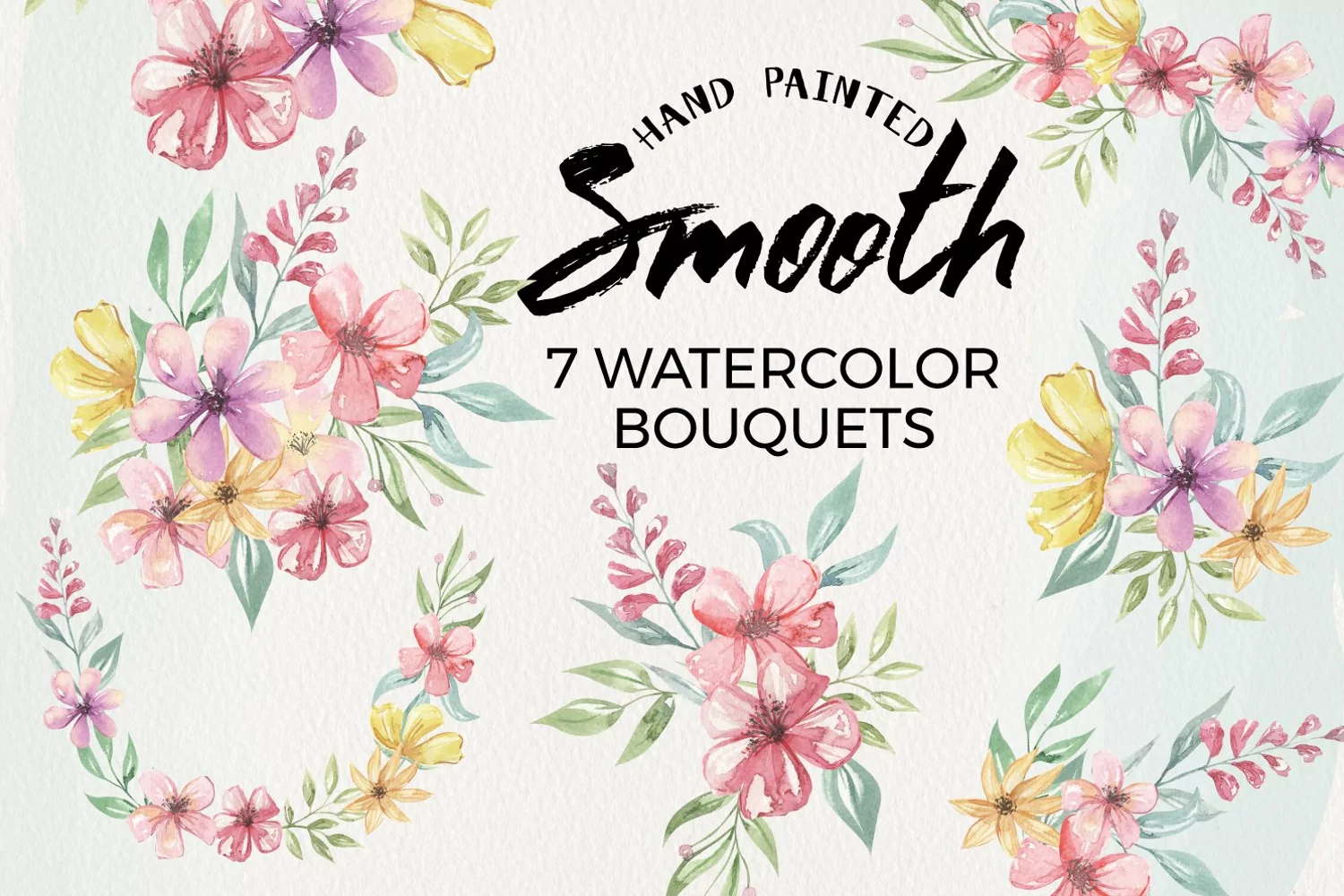 Smooth Florals 7 Bouquets Watercolor Pastels Pink Delicate example image 1
