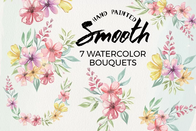 Smooth Florals 7 Bouquets Watercolor Pastels Pink Delicate