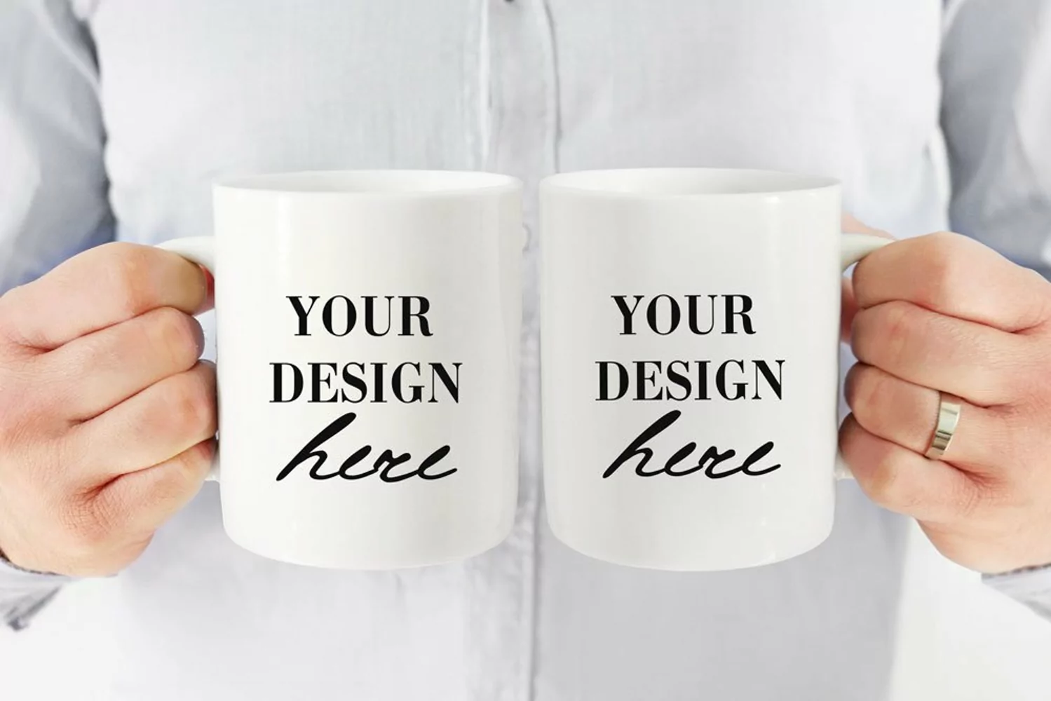 Best choice to show your designs in action, this Double mug mockup with man is ready for instant download and will save plenty of your time so you can list more designs faster!
