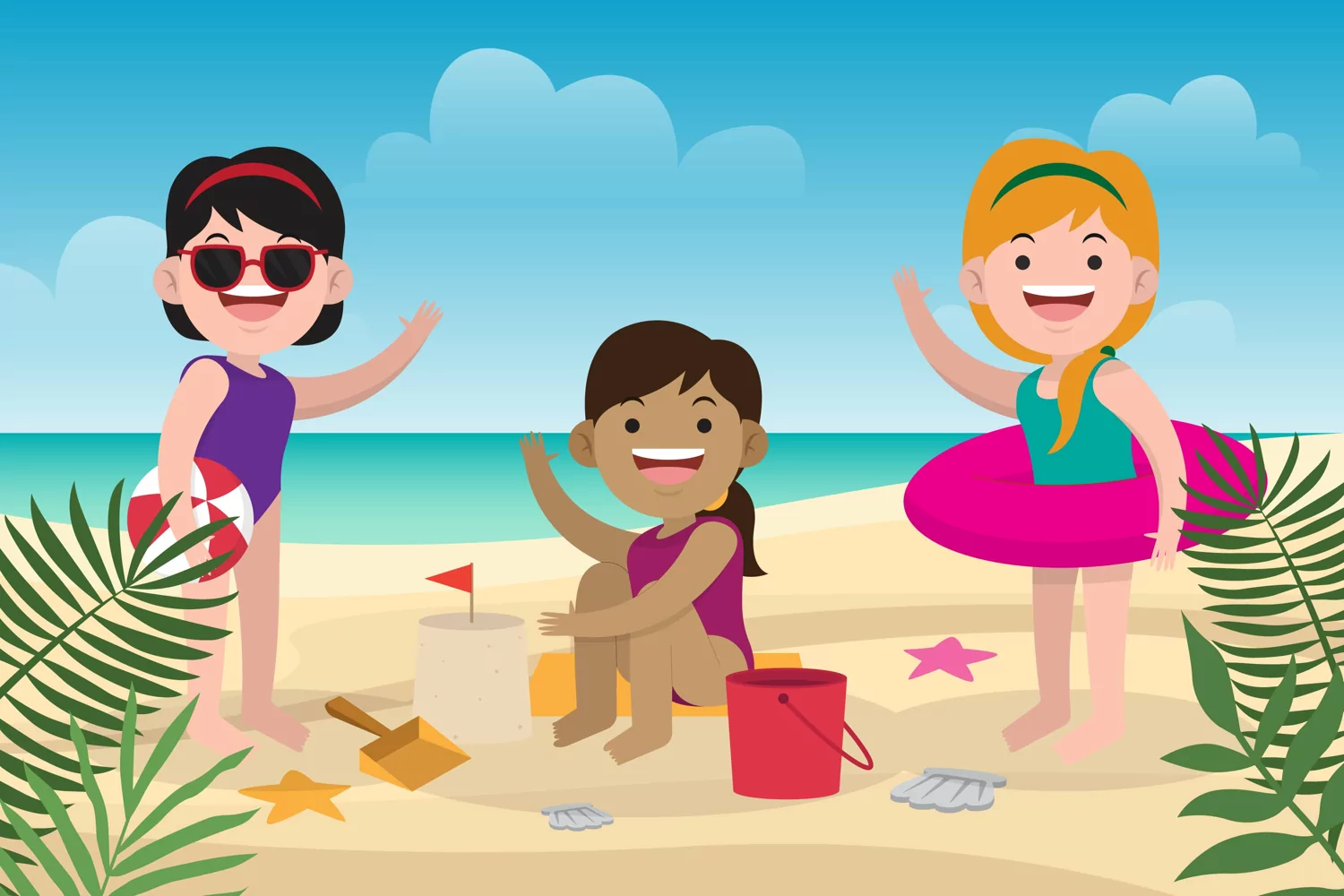 Fun Girl Beach Landscape Playing Summer Girl Set