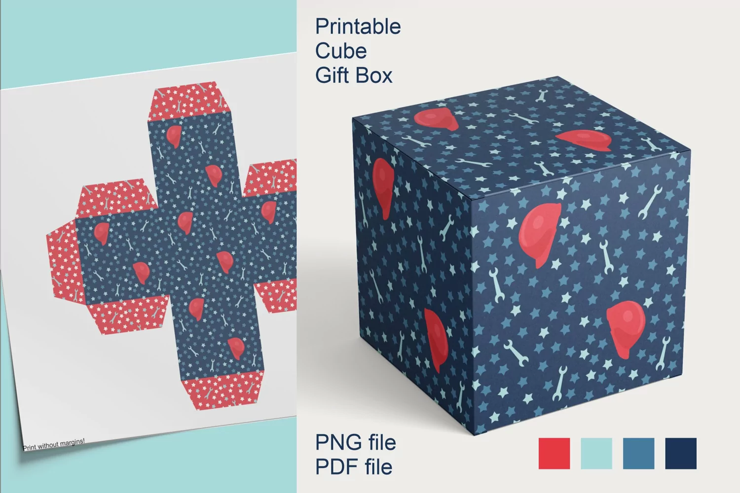 Printable Dark Blue Cube Box for Candies and Small Labor's Day Favors - Gift Box Template