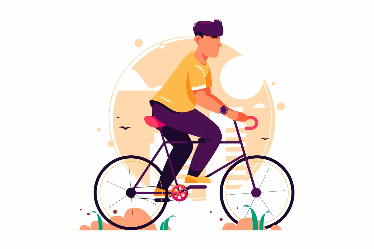 Introducing!, Man Cycling In Town-Vector Illustration - Suitable for your design needs, All elements on this template are editable with adobe illustrator! Editable and Layered"