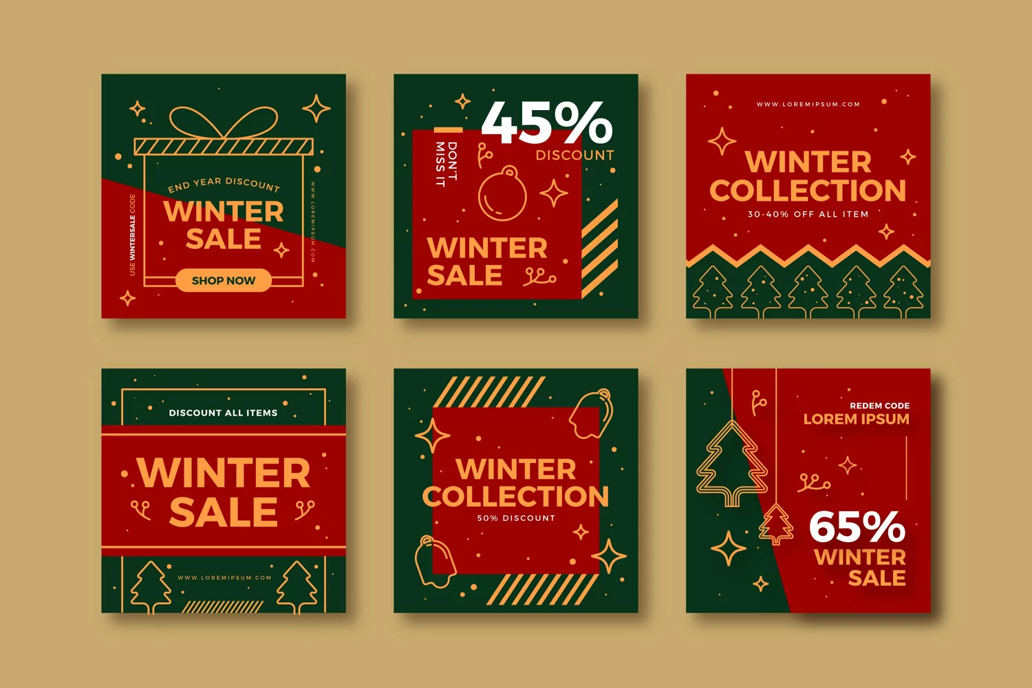 Illustration Family Vector Christmas Winter Collection Flat Design Shopping End Year Sale Christmas Sale Instagram Post