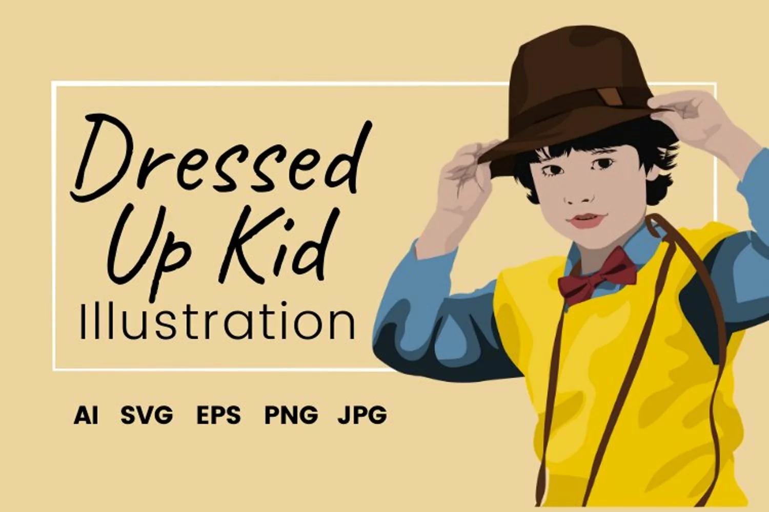 This “Dressed Up Kid” Illustration is perfect for your next digital craft project, merchandise, print on demand design, mug design, printed artwork display and so much more!