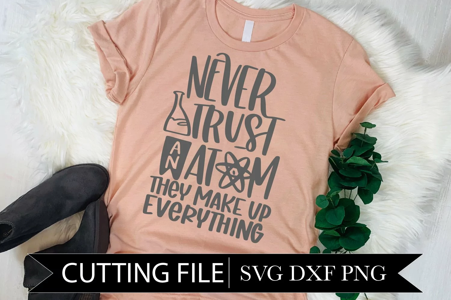 Never Trust an Atom - Funny Science - Hand Lettered SVG