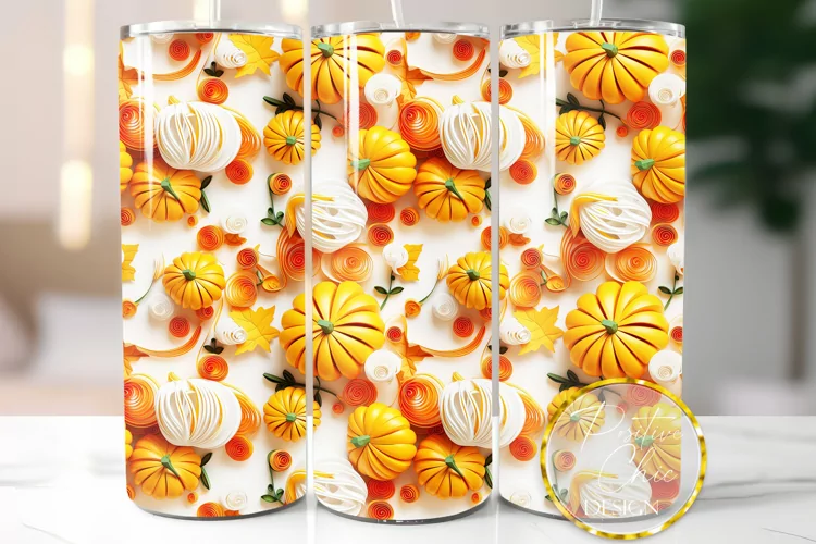 Similar Design Products to 3D Pumpkins Fall 20 oz Skinny Tumbler Wrap Sublimation PNG