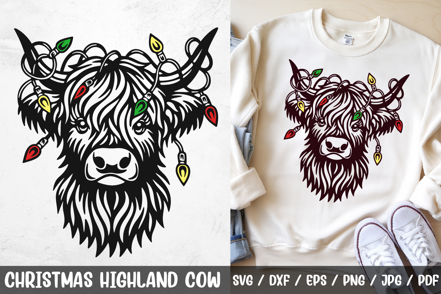 Similar Design Products to Christmas Highland Cow SVG | Festive Cow with Holiday Lights