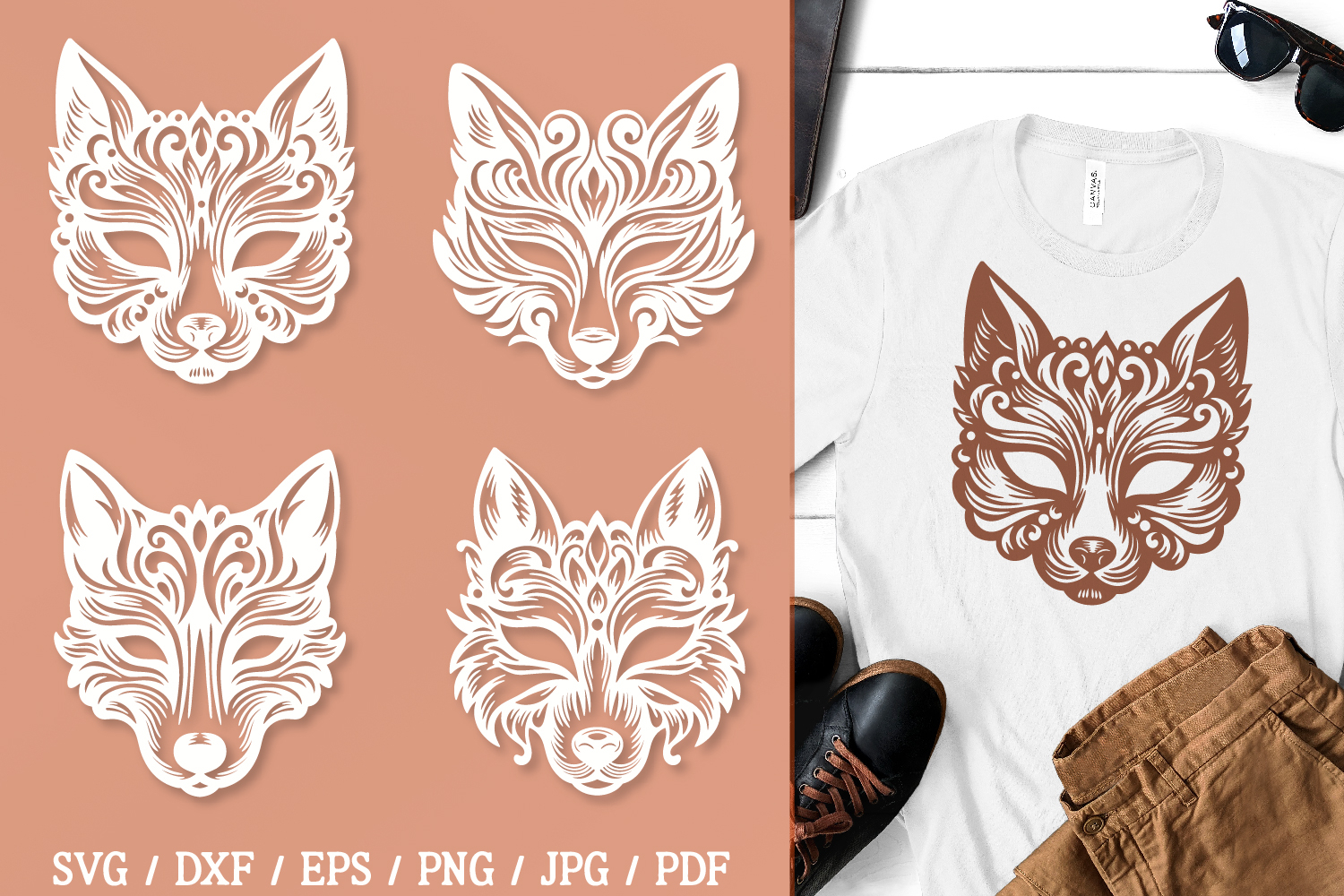 Create stunning crafts with this collection of ornamental wolf mask SVG files. These vector designs are ideal for papercutting, vinyl, t-shirts, cards, DIY masks and home décor. Each mask features intricate details and is perfect for both adults and kids,