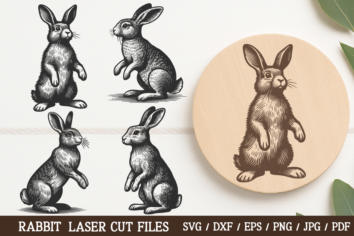 Rabbit laser cut files—vintage-style hand drawn bunnies for wood crafts, engraving, and nursery decoration.