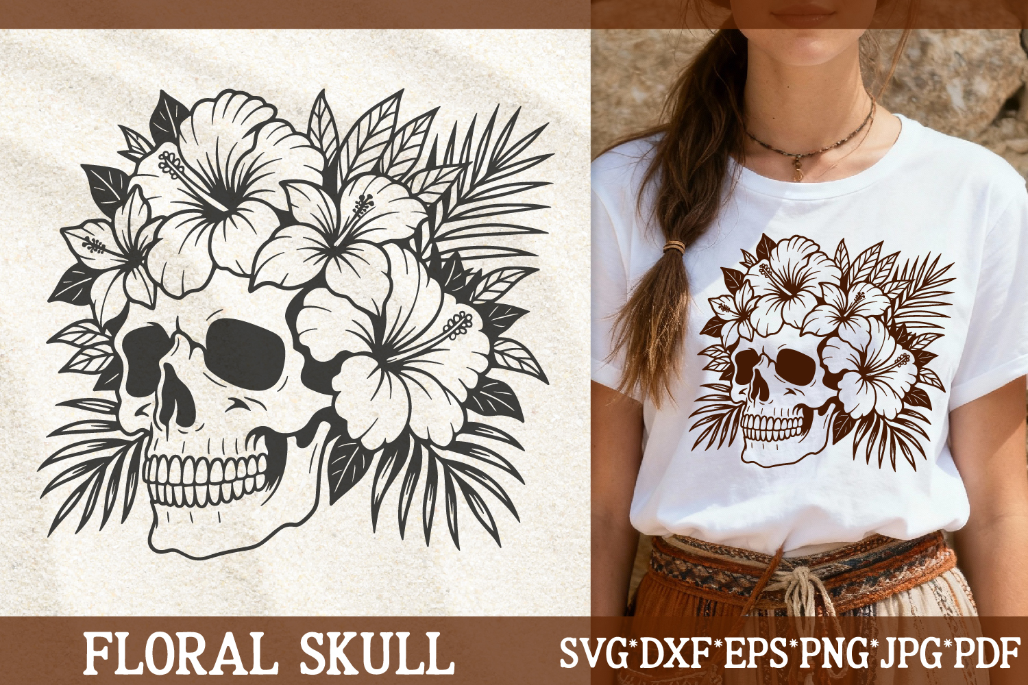 Floral Skull SVG Files | Tropical Flowers Cut File