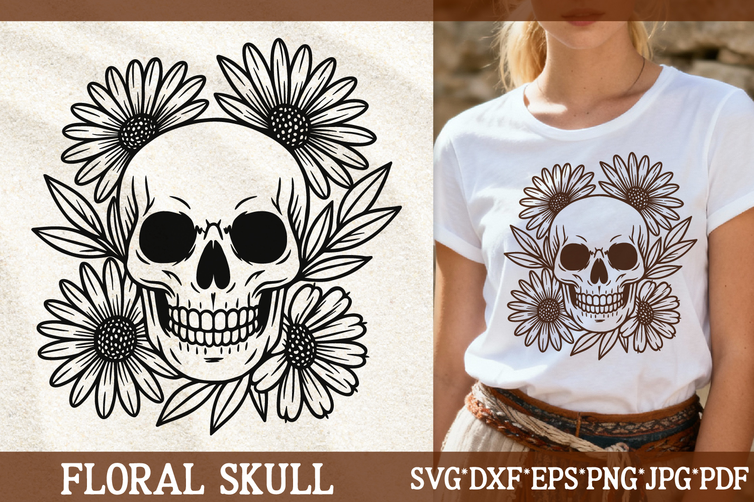 Floral Skull SVG Files | Daisy Flowers Boho Skeleton Art