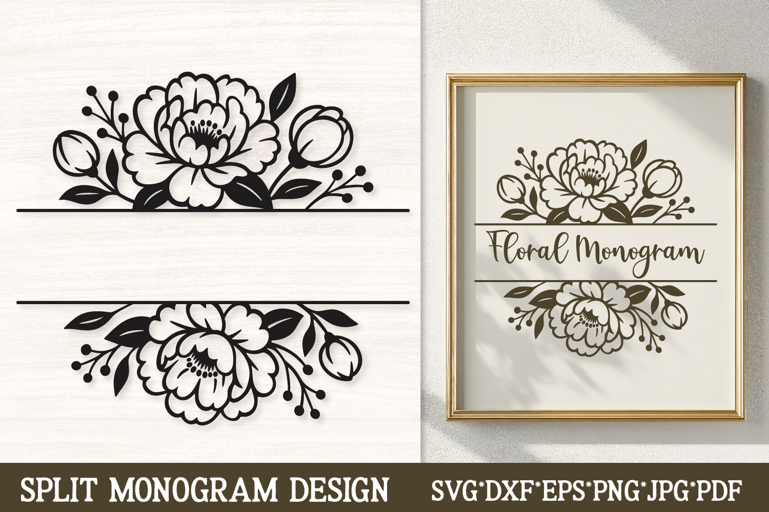 Split Monogram Wedding Monogram Baby Shower Svg Flower Monogram Clipart Split Floral Frame Svg Delicate Flower Monogram Cricut Delicate Bloom Silhouette Soft Flower Split Letter Floral Delicate Name Frame