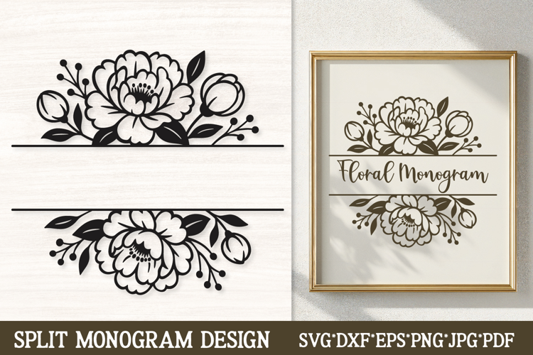 Delicate Flower Split Monogram SVG | Floral Frame Design