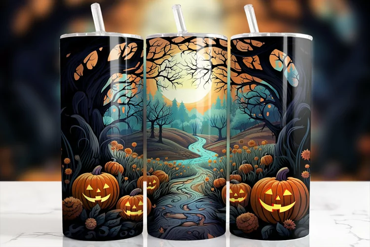 Sublimation Design Tumbler Png Tumbler Wrap Sublimation Tumbler Wrap Tumbler Sublimation 20oz Skinny Tumbler Tumbler Wrap Designs Halloween Tumbler Wrap Pouredpixels Twilight Jack-o'-lanterns - Tumbler Wrap Scene