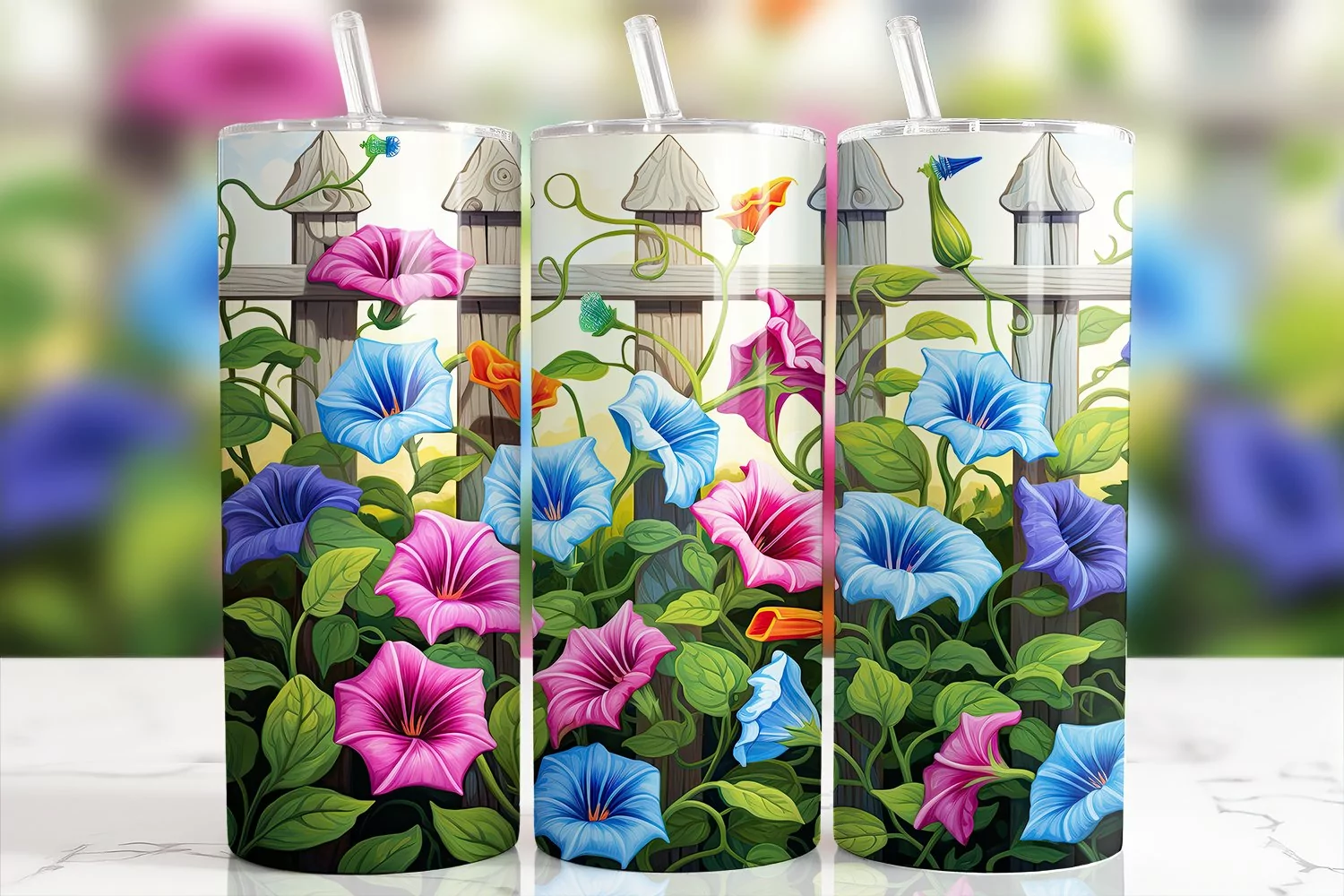 Country Garden Blooms: Vibrant Morning Glory Tumbler Wrap