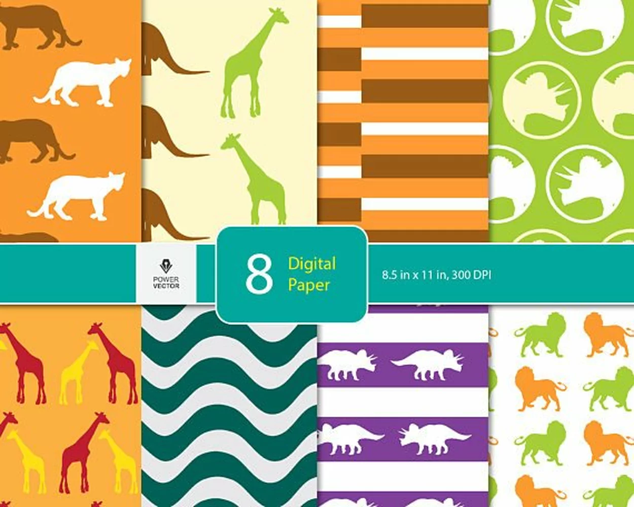 Vector Pattern Digital Paper Seamless Patterns Digital Background Stripes Card Making Digital Papers Wild Animals Instant Download