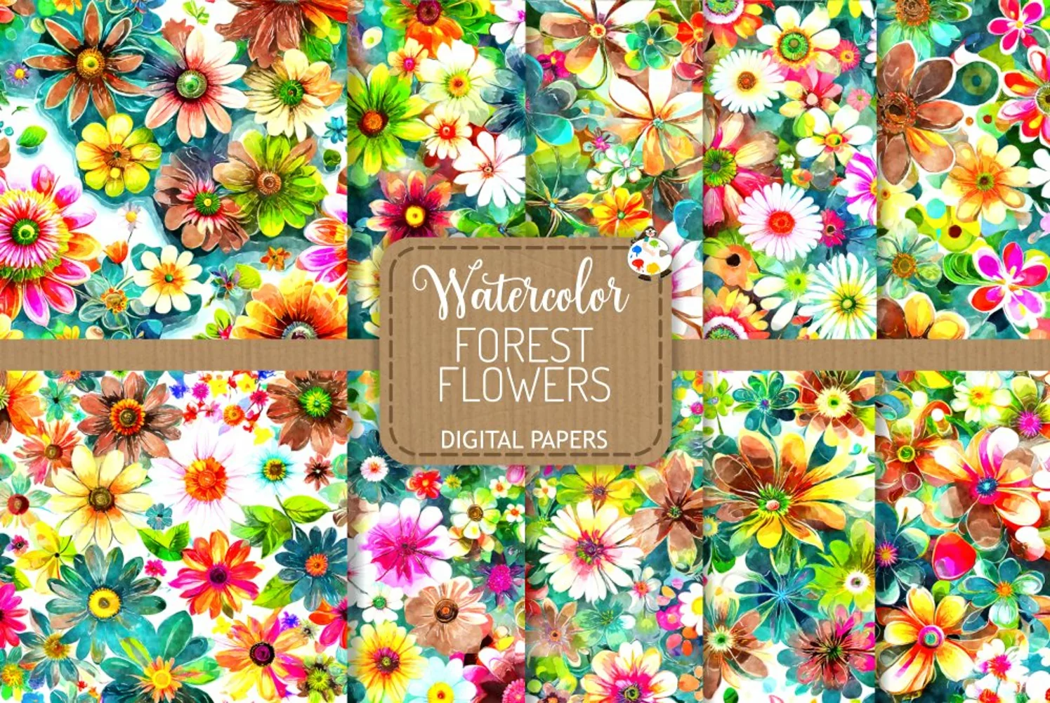 Forest Flowers - Watercolor Digital Pattern Papers example image 1