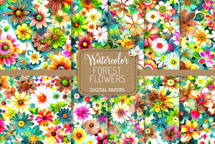 FOREST FLOWERS – WATERCOLOR DIGITAL PAPERS