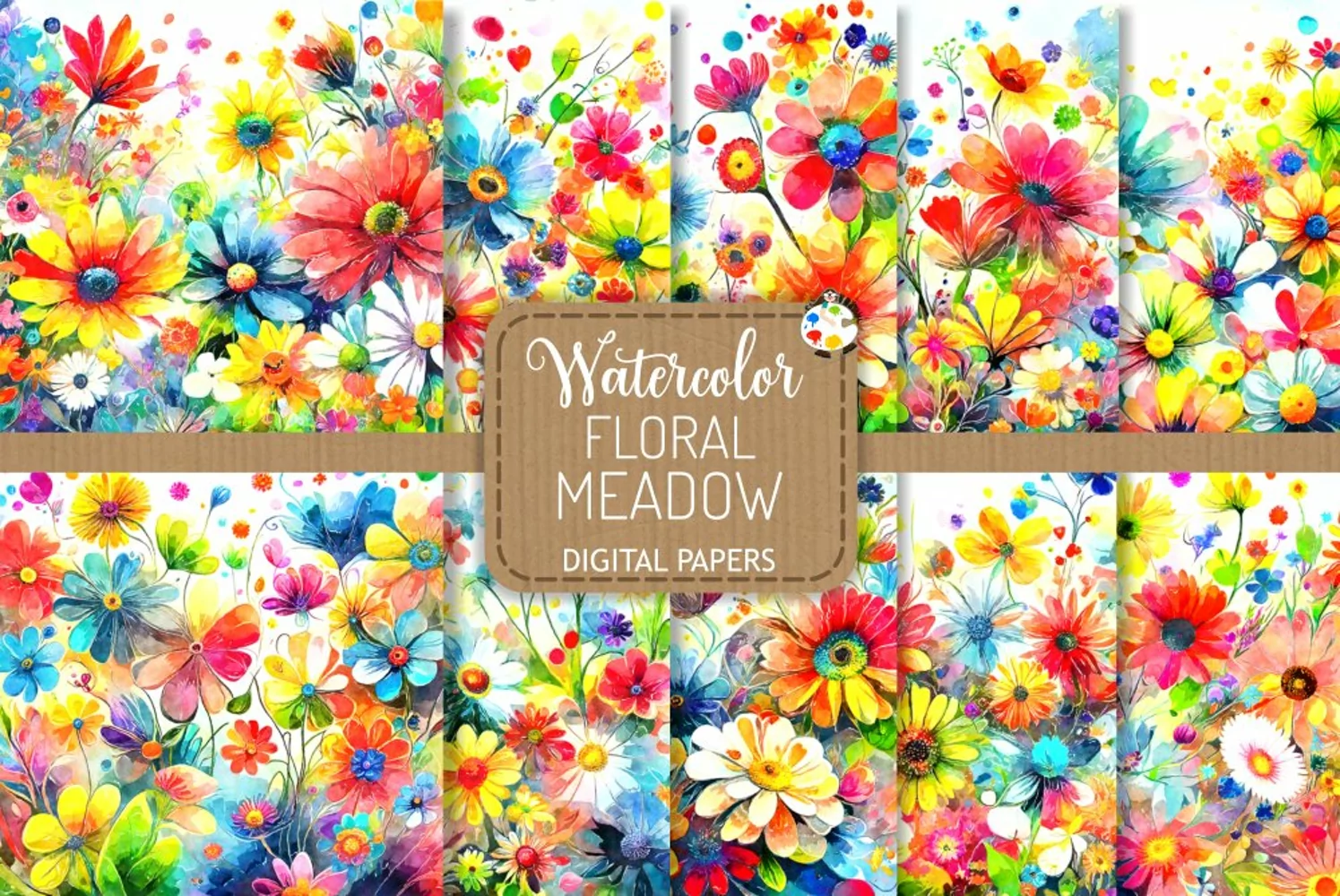 FLORAL MEADOW – WATERCOLOR DIGITAL PAPERS