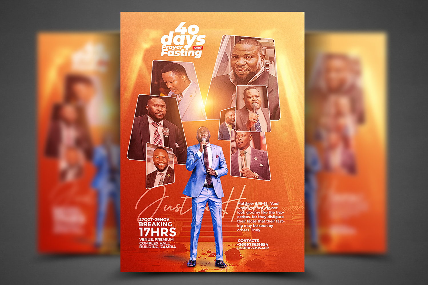 Looking for a Prayer & Fasting Flyer Template Psd in PSD format to make your editing process faster and more professional? This Prayer & Fasting Flyer psd is designed to help your church announcement stand out with ease.
