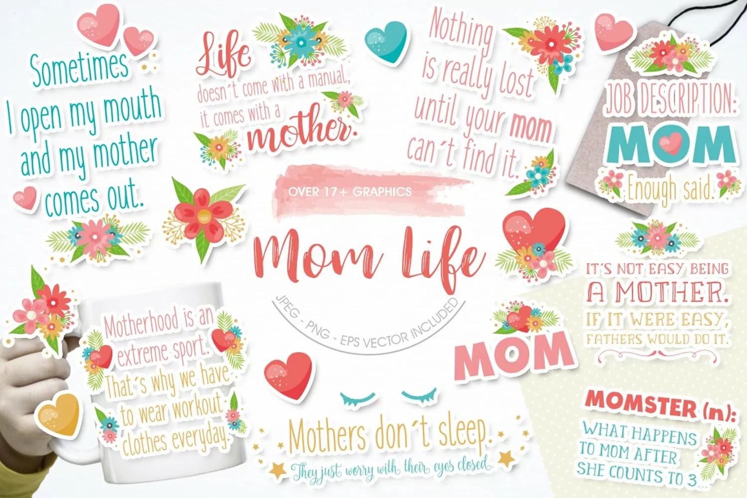 Mom Life pack features over 17 graphic elements and is perfect for invitations, greeting cards, product design, tags, labels and so much more. Shop more of our products in our shop!