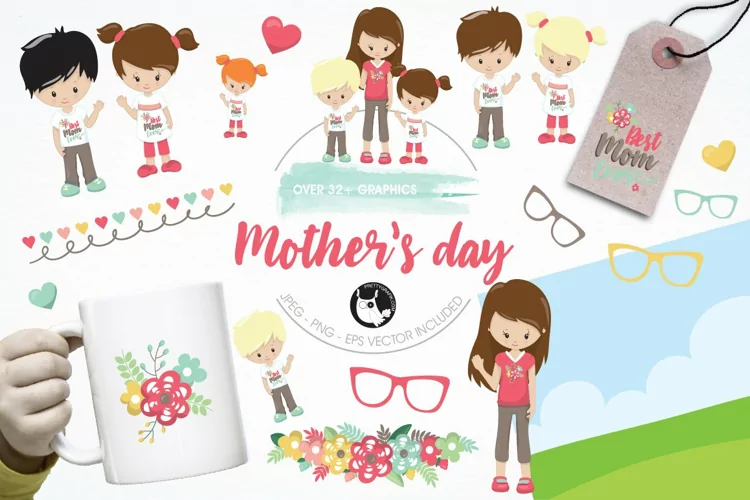 Mother's day clipart includes adorable typography and super cute flowers. This vector clipart set is suitable for invitation making , embroidery digitizing , scrapbook and all your crafting.