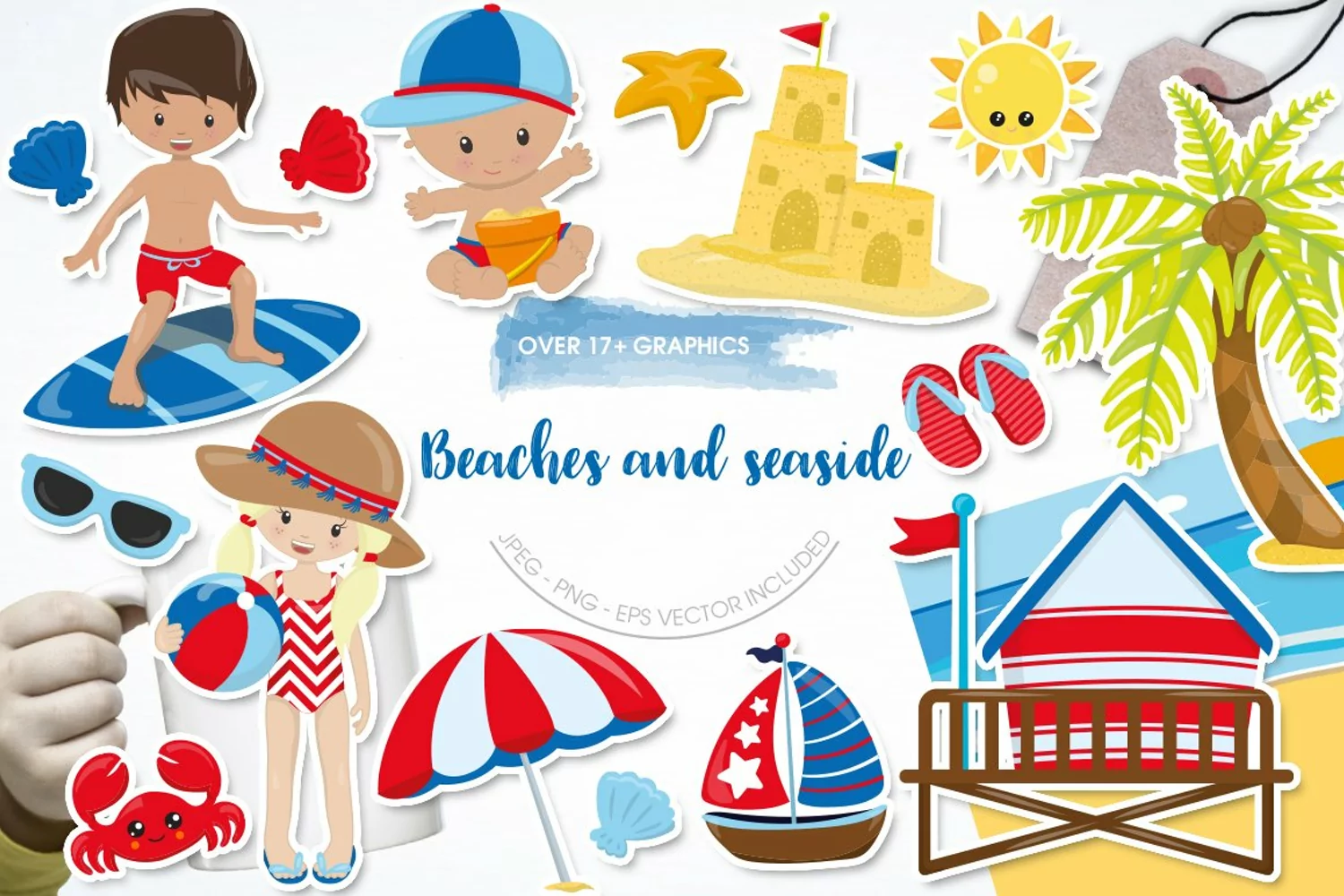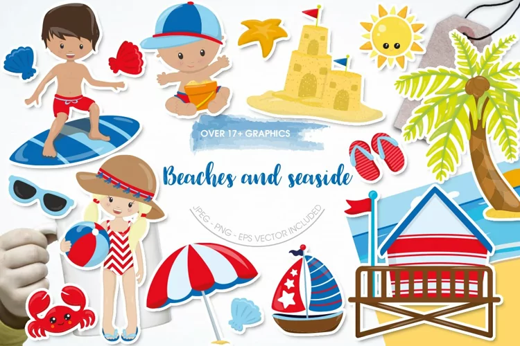 Beaches and seaside pack features over 17 graphic elements and is perfect for invitations, greeting cards, product design, tags, labels and so much more. Shop more of our products in our shop!