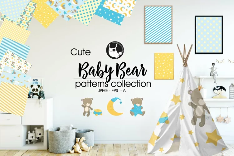 Texture Baby Patterns Bear Digital Paper Background Star Product Design Baby Bear Room Decor