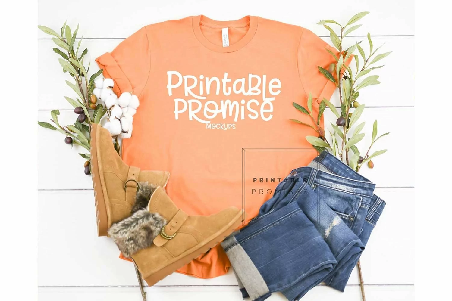 ❤Bella Canvas 3001 Burnt Orange Mock Up Flatlay Shirt Image