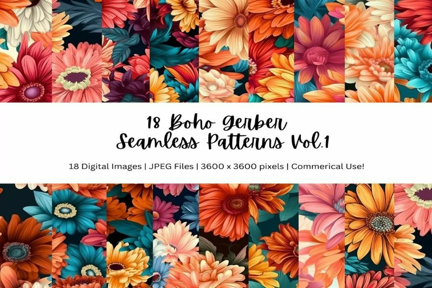 Immerse yourself in the enchanting world of floral aesthetics with this captivating Boho Gerber Seamless Pattern. This digital download includes 18 exquisite and high-quality Gerber seamless backgrounds that will elevate your creative projects to new heights. Whether you're designing invitations, scrap-booking, creating fabric prints, or crafting personalized gifts, these intricate flower patterns are sure to add a touch of elegance and beauty.