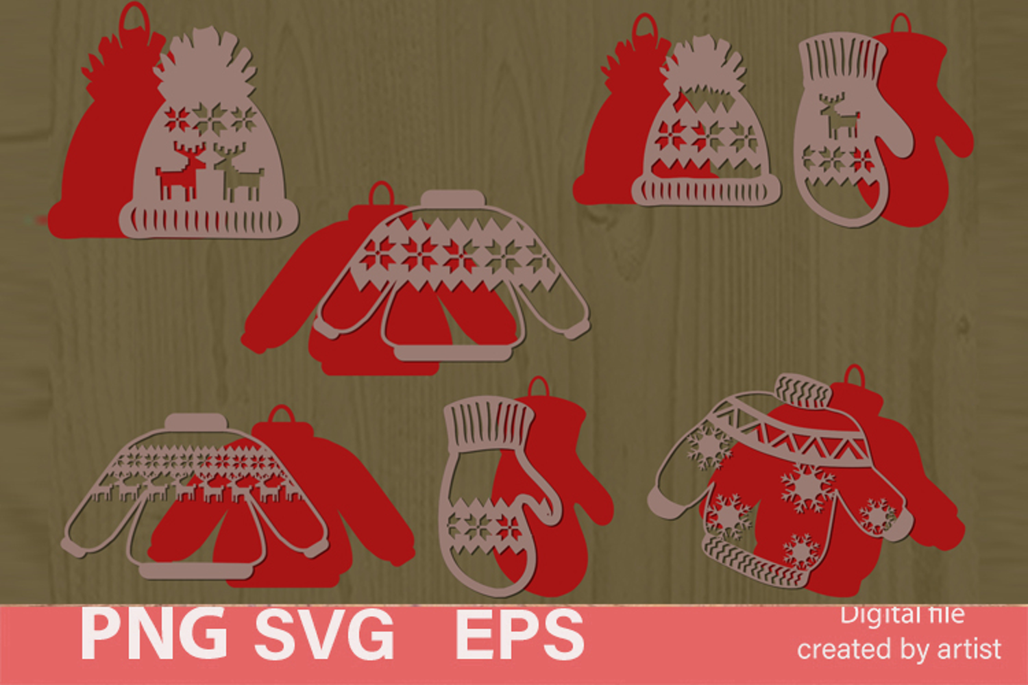 Christmas tree decorations SVG, multi-layer cutting SVG, example image 1
