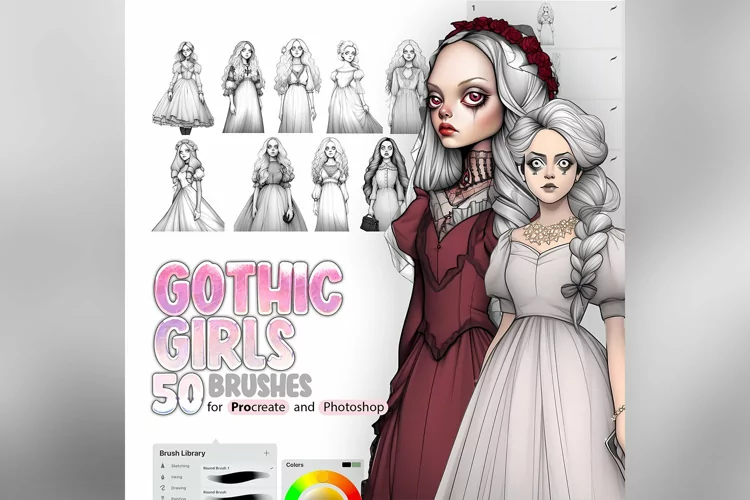 Similar Design Products to 50 Procreate Gothic Girls Stamp Brushes