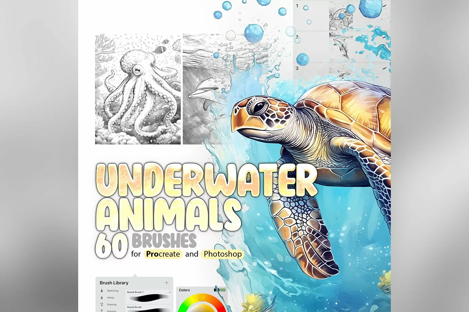 Similar Design Products to 60 Procreate Underwater Animals Stamp Brushes