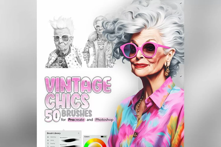 50 Procreate Vintage Chic Stamp Brushes