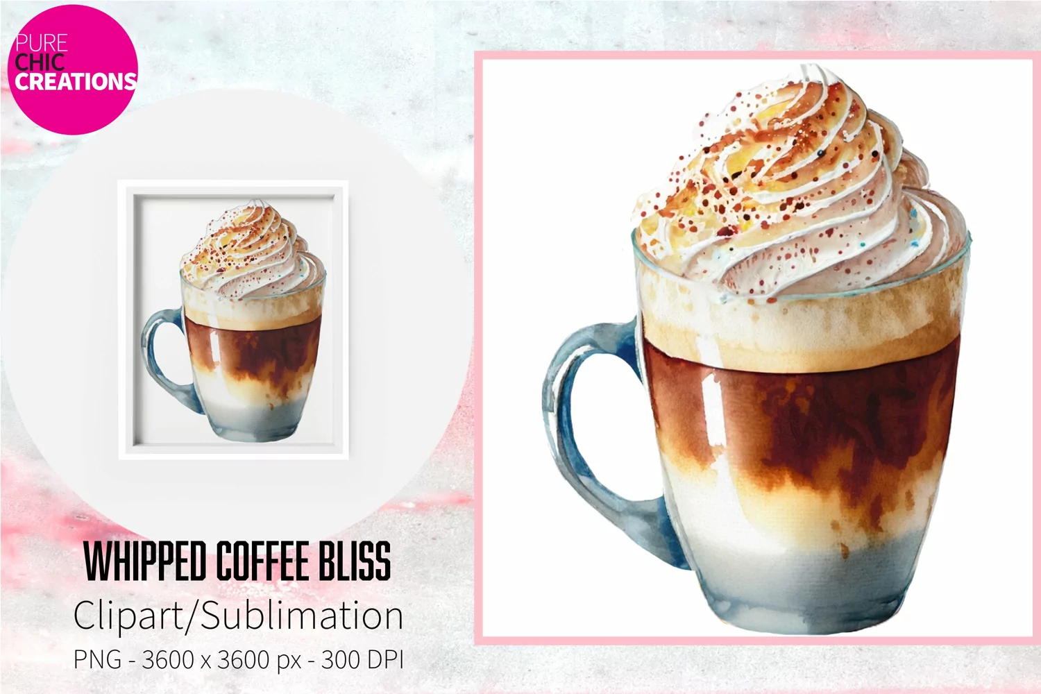 Title: A 12x12 Sublimation & Clipart Design - Whipped Coffee Bliss Clipart