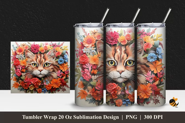 Cat Flower Tumbler Wrap Sublimation Design 1